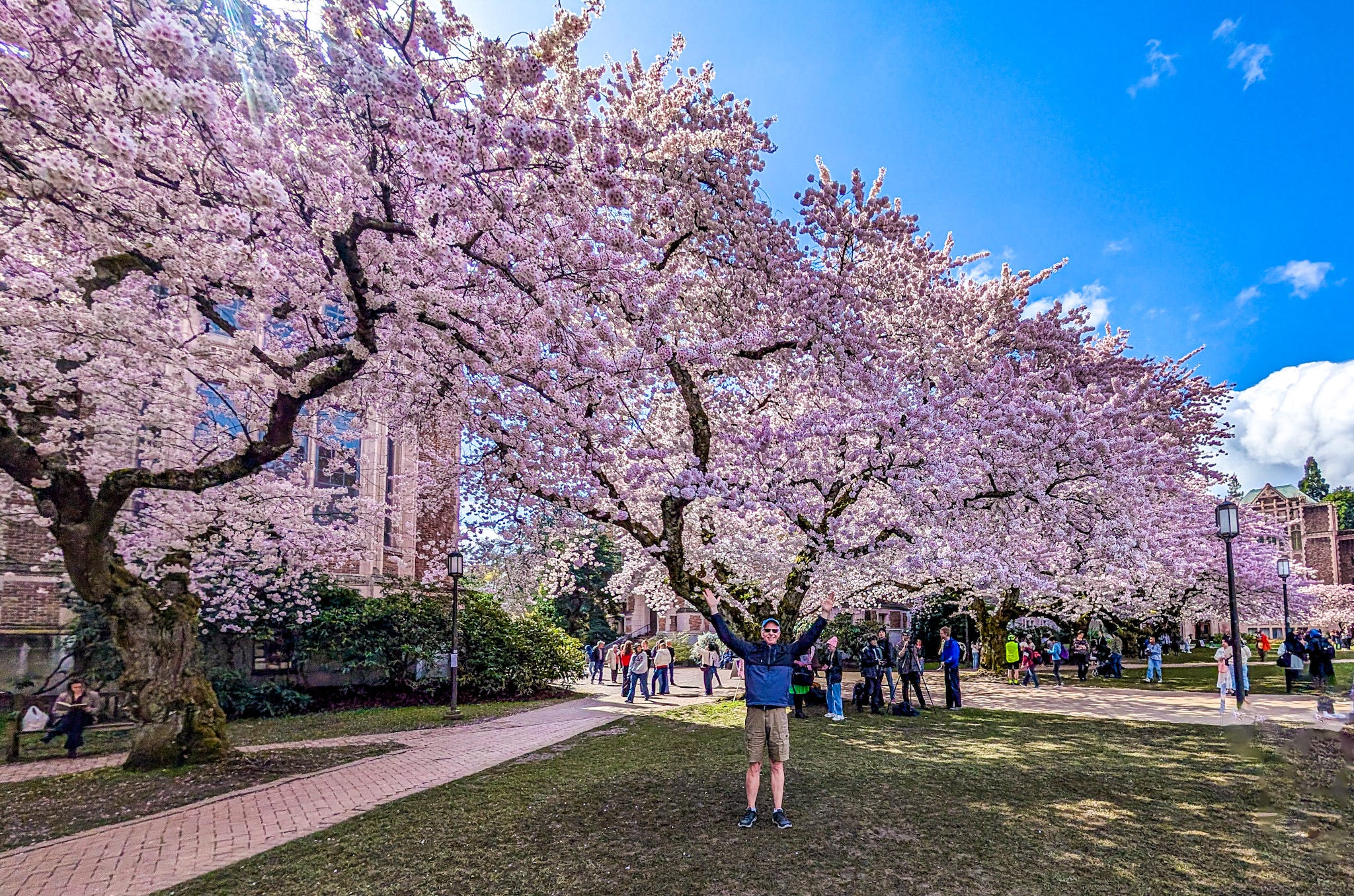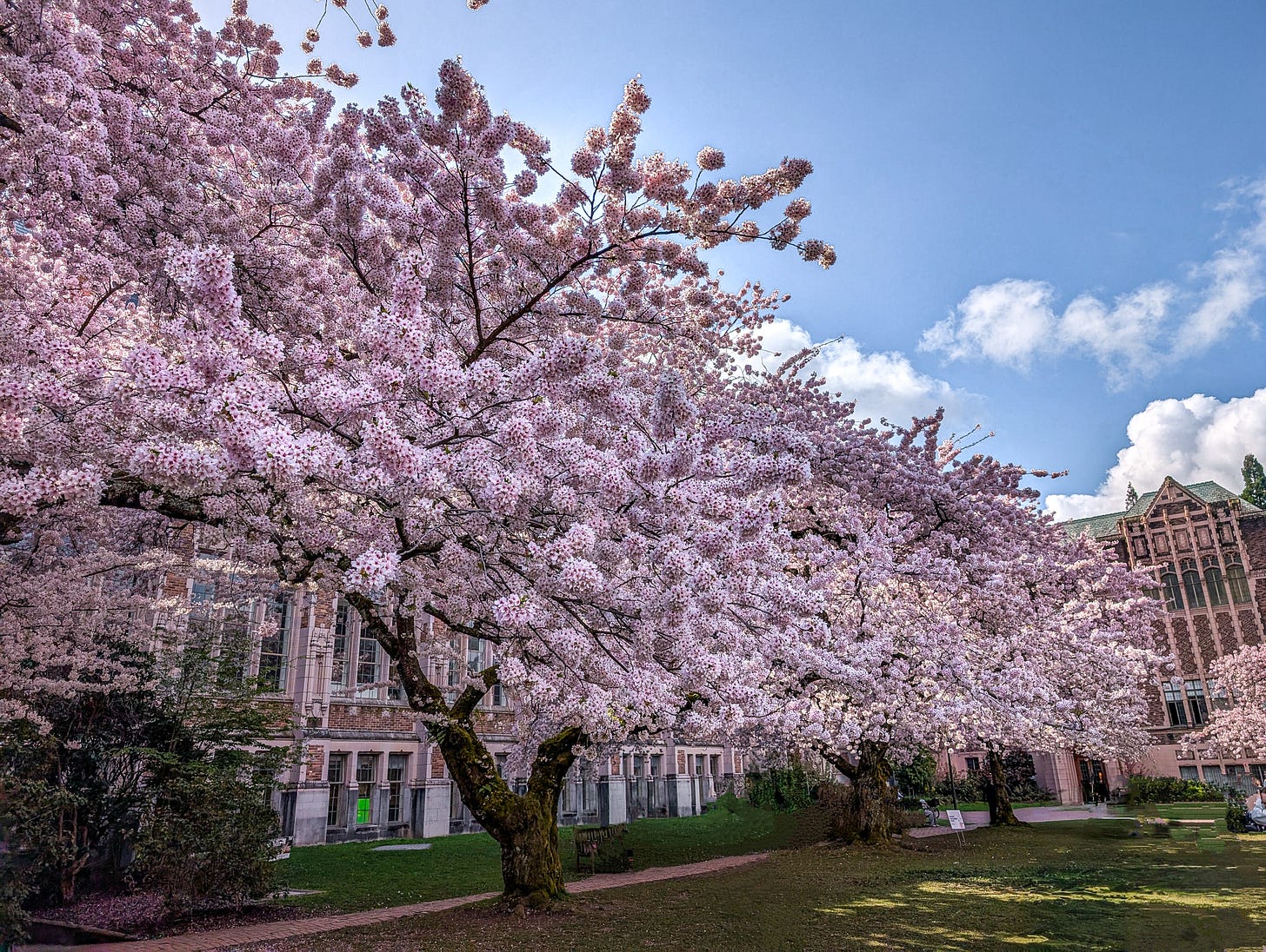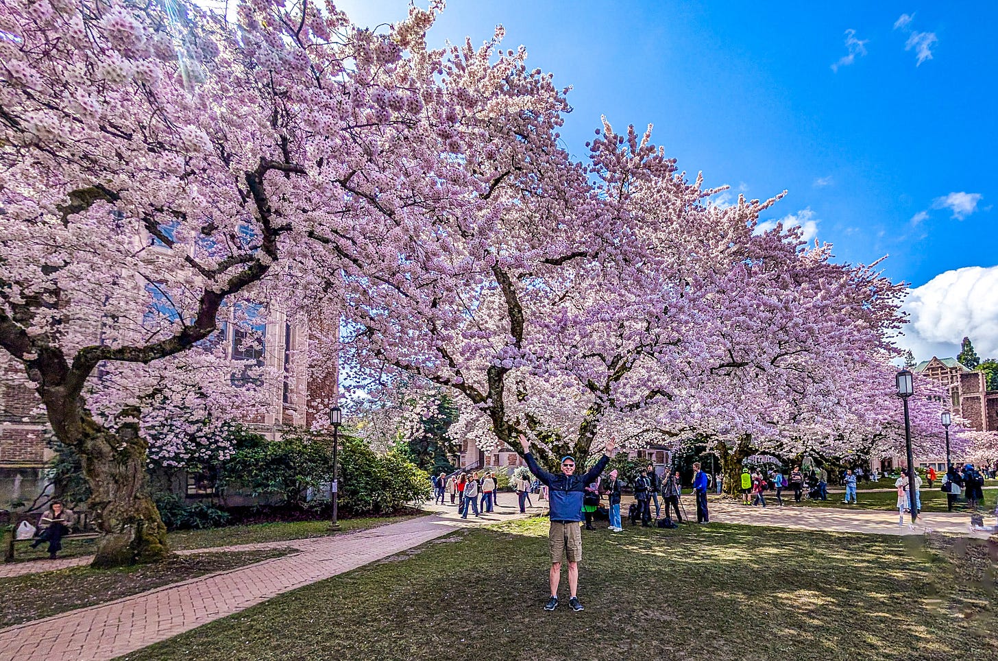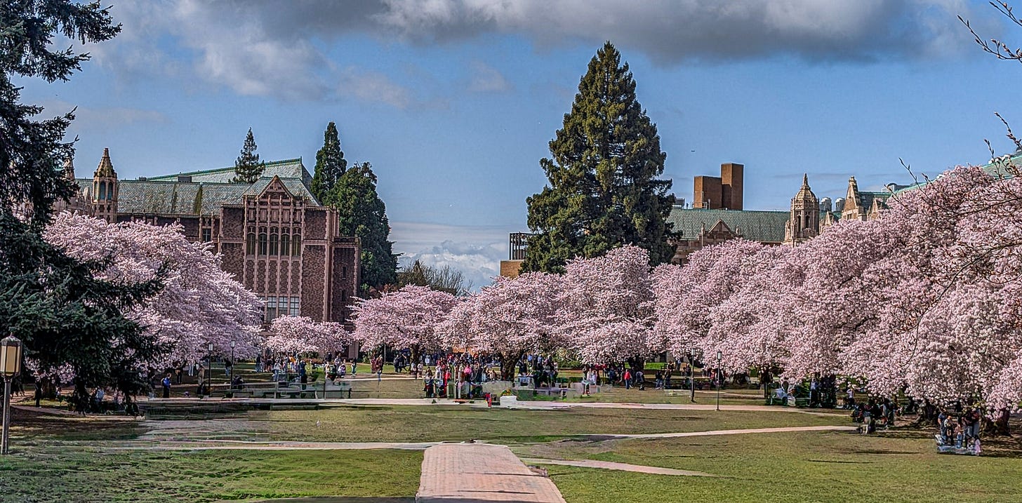 Let’s start with the legendary Yoshino cherry trees of the Quad, short for the Liberal Arts Quadrangle, on the University of Washington campus.