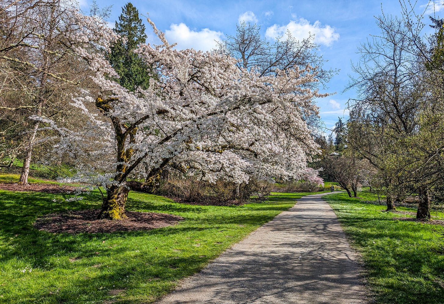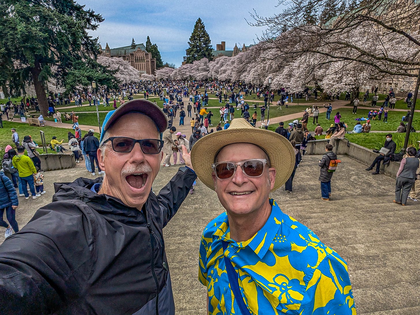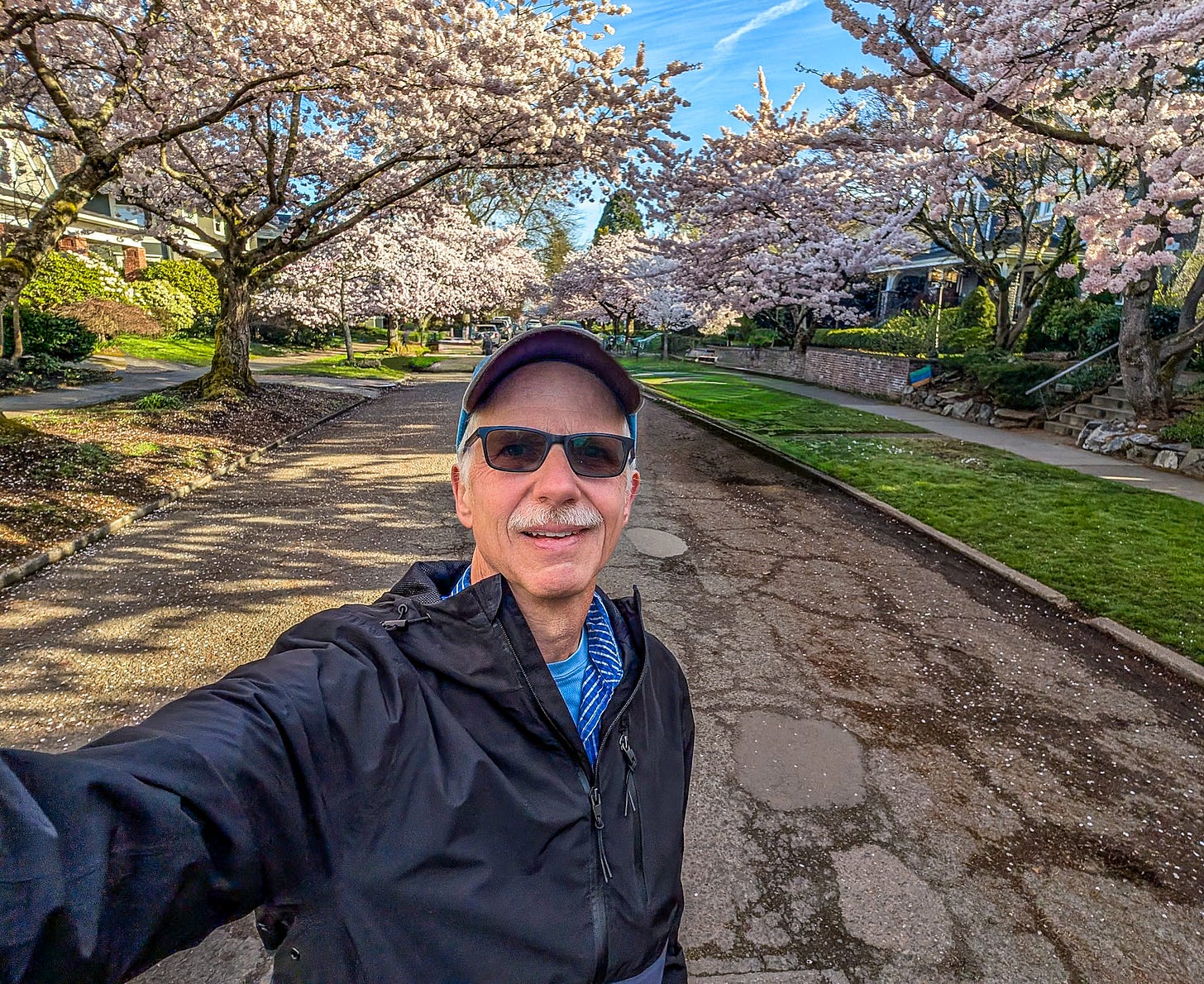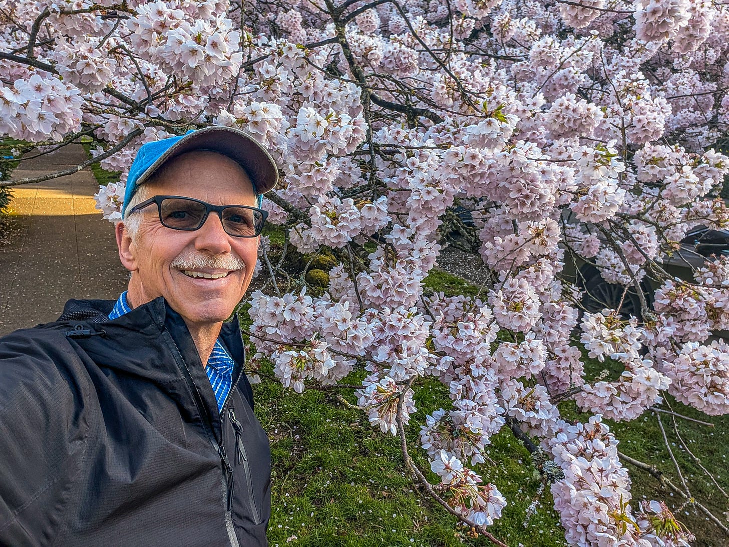 That’s because Michael, bless his baseball cap, recently blundered into a spectacular display of cherry blossoms in Seattle.