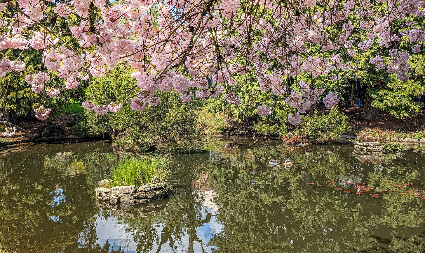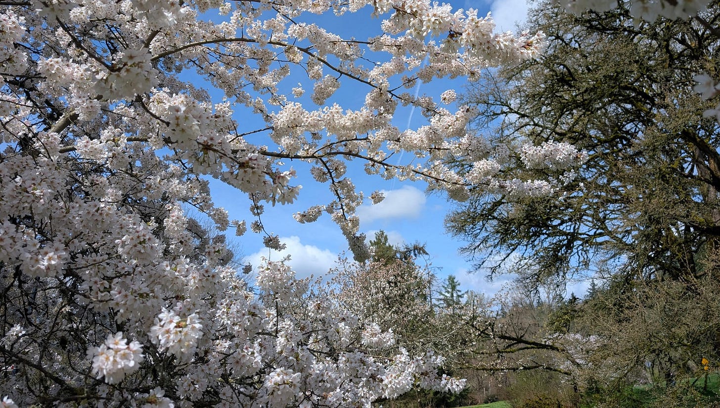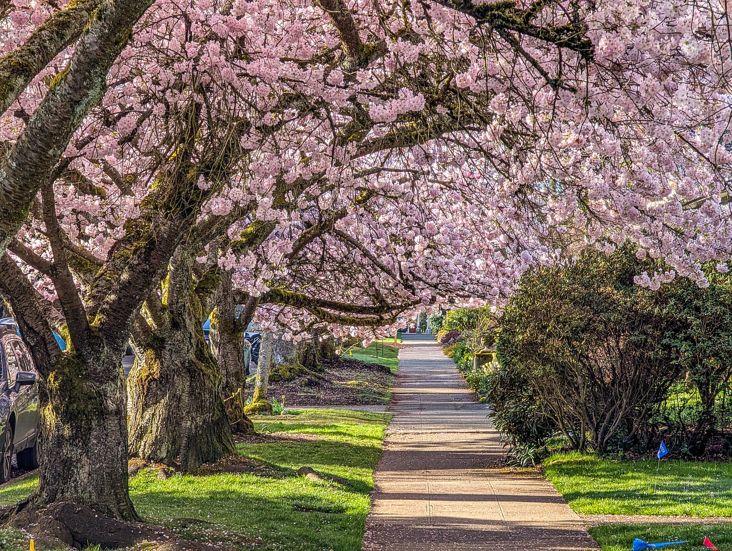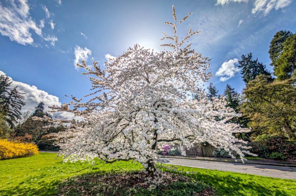 That’s because Michael, bless his baseball cap, recently blundered into a spectacular display of cherry blossoms in Seattle.