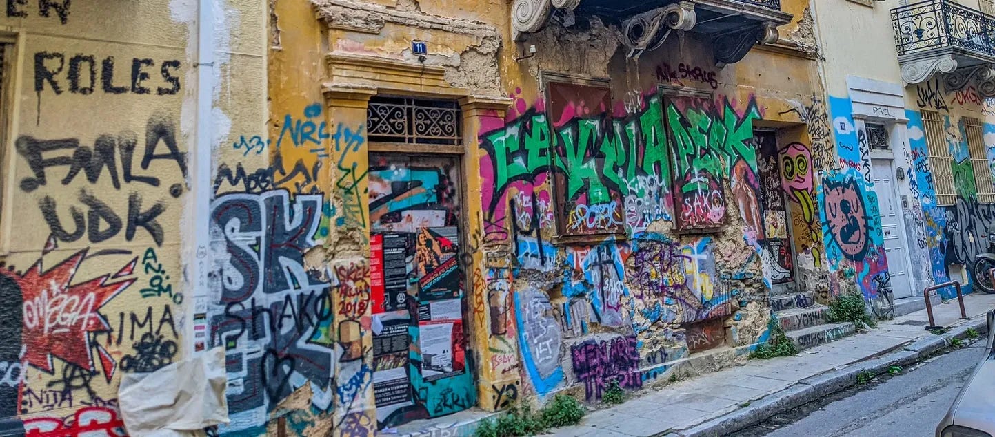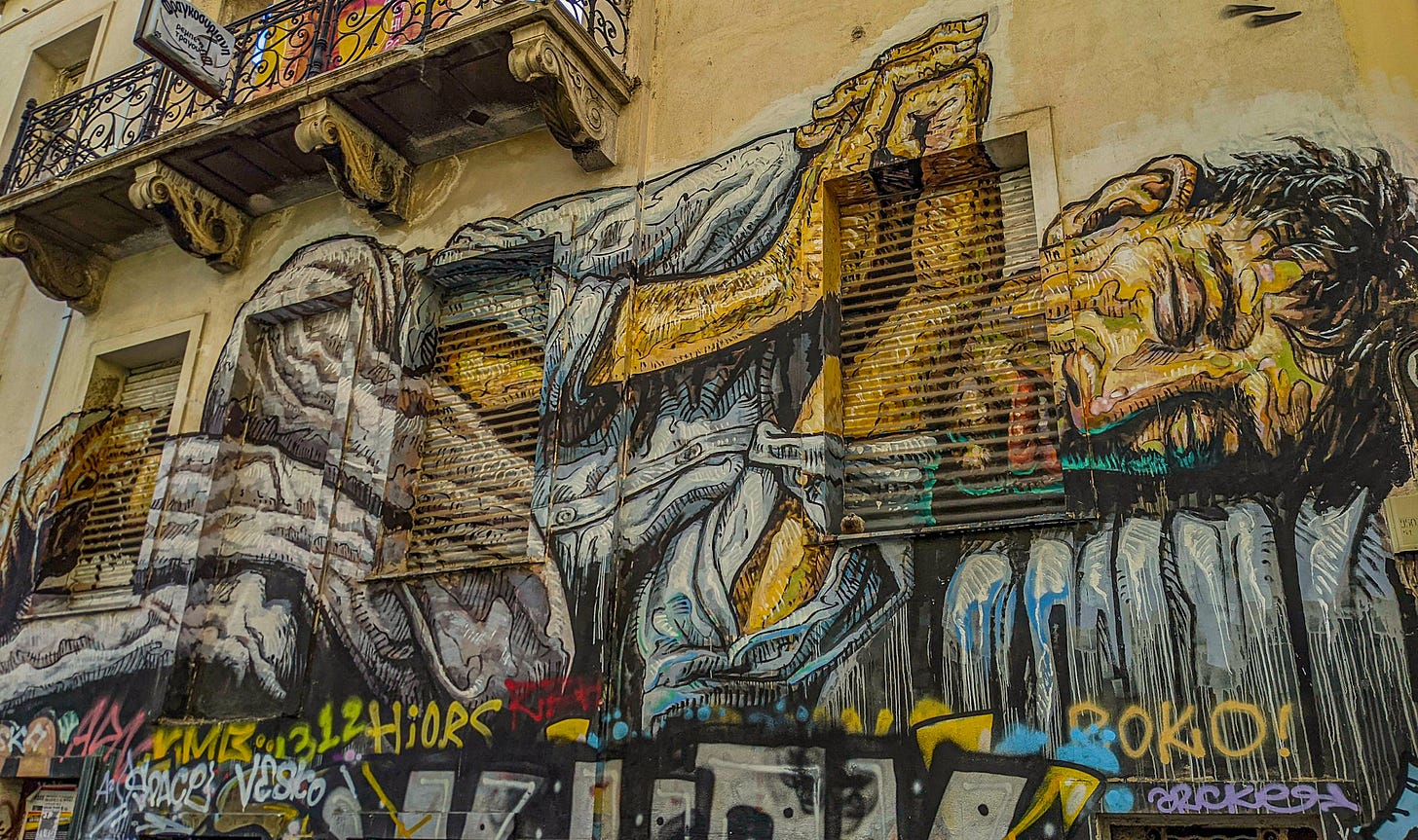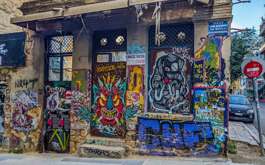 “Greeks don’t think the way you do,” a local friend told me. “We push back against authority. We value speaking out. So a lot of people feel the outsides of the buildings belong to everyone.”