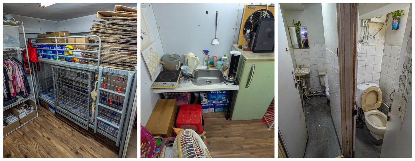 During my research, I came across SoCO — the Society for Community Organization — an NGO focused on Hong Kong’s housing crisis, including what are known as cage homes: subdivided apartments where residents sleep in actual metal cages, often with no windows, no ventilation, and shared toilets.