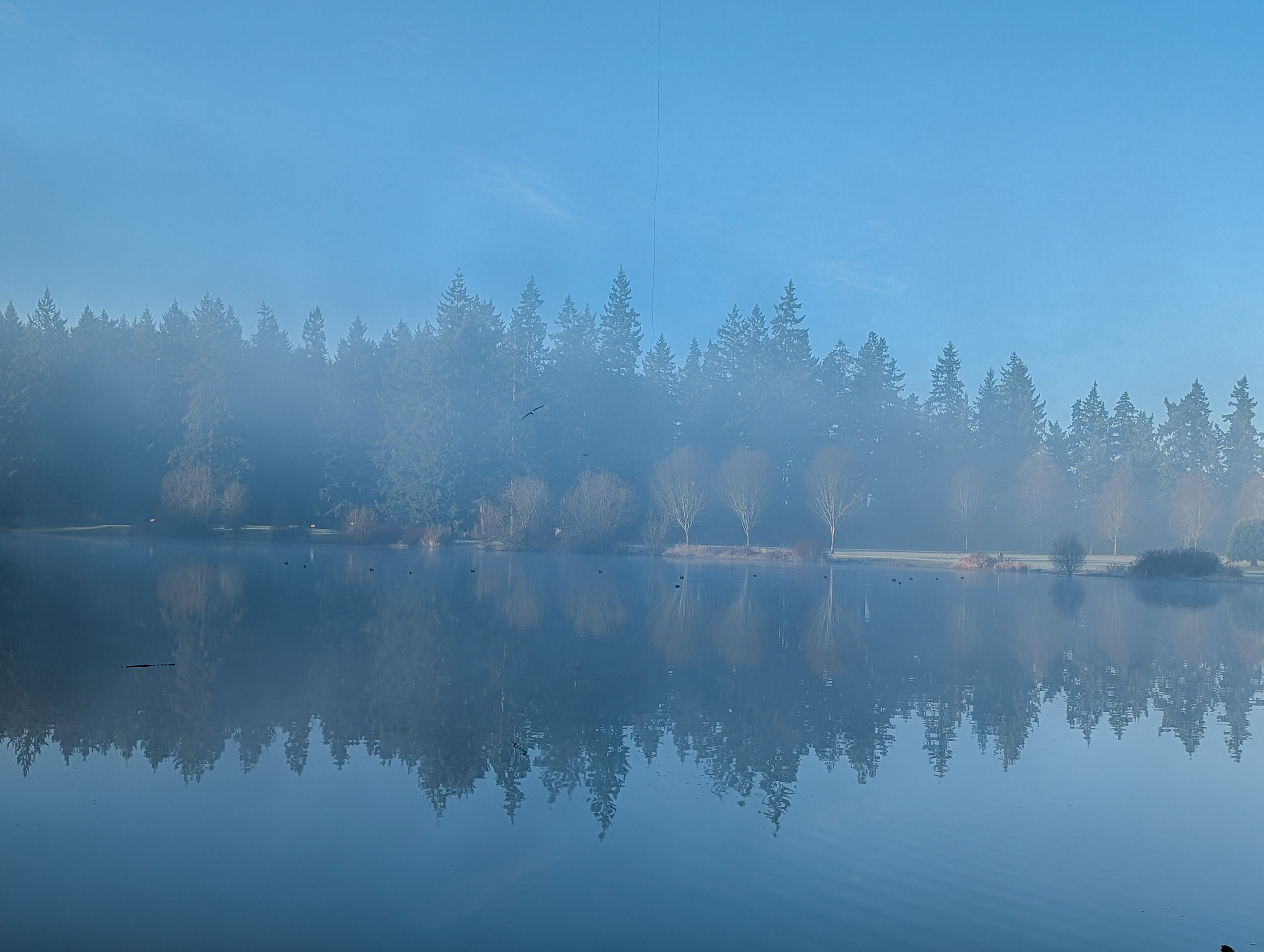 The lake shrouded in mist...